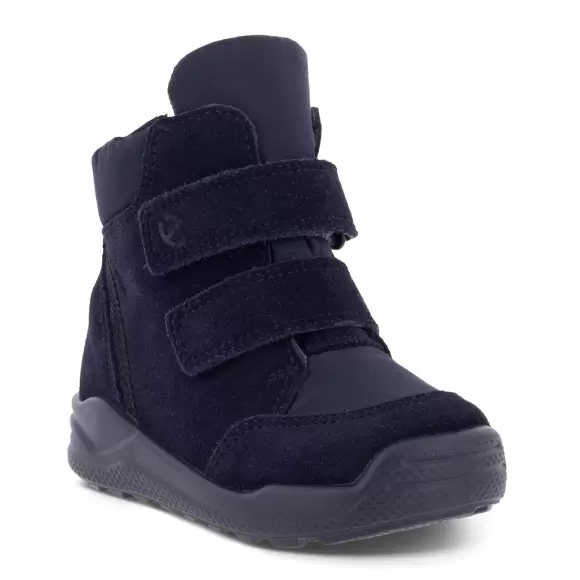 Art. No. 754781-50769 Drenge vinterstøvle fra Ecco lavet i blå nubuck skind med forstærkning på snuden, støvlen reguleres efter foden med 2 velcro lukninger for en optimal støtte og pasform til barnet. Den fine støvle har en 100% vandtæt og åndbare Gore-T