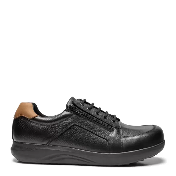 Art. No. 242-32-110Smarte mørke sko til herre fra mærket New feet, skoen er udstyret med en snøre og lynlås, som gør skoen hurtig og nem at få af og på, skoens overdel er lavet i en pæn og behagelige nubuck. Ydersål, er lavet en god TR skum. Hælløft 27 mm